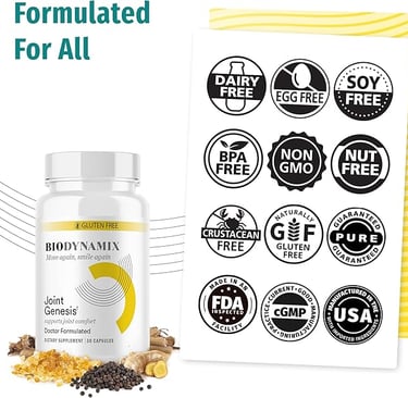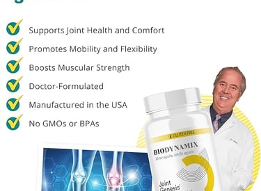STATEMENTS FOUND ON THIS WEBSITE HAVE NOT BEEN EVALUATED BY THE FOOD AND DRUG ADMINISTRATION. PRODUCTS ON THIS WEBSITE ARE NOT INTENDED TO DIAGNOSE, TREAT, CURE, OR PREVENT ANY DISEASE. IF YOU ARE PREGNANT, NURSING, TAKING MEDICATION, OR HAVE A MEDICAL CONDITION, CONSULT YOUR PHYSICIAN BEFORE USING OUR PRODUCTS. Biodynamix Joint Genesis is a premium joint health supplement made in the USA with natural, scientifically tested ingredients.